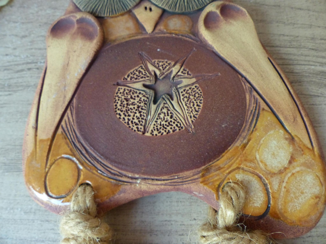 Plaque Murale Chouette en Poterie – Sculpture Artisanale Vintage Années 70 à Suspendre | Décoration Entrée, Patio ou Chambre