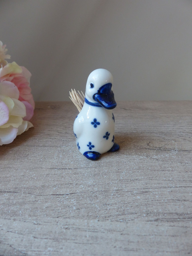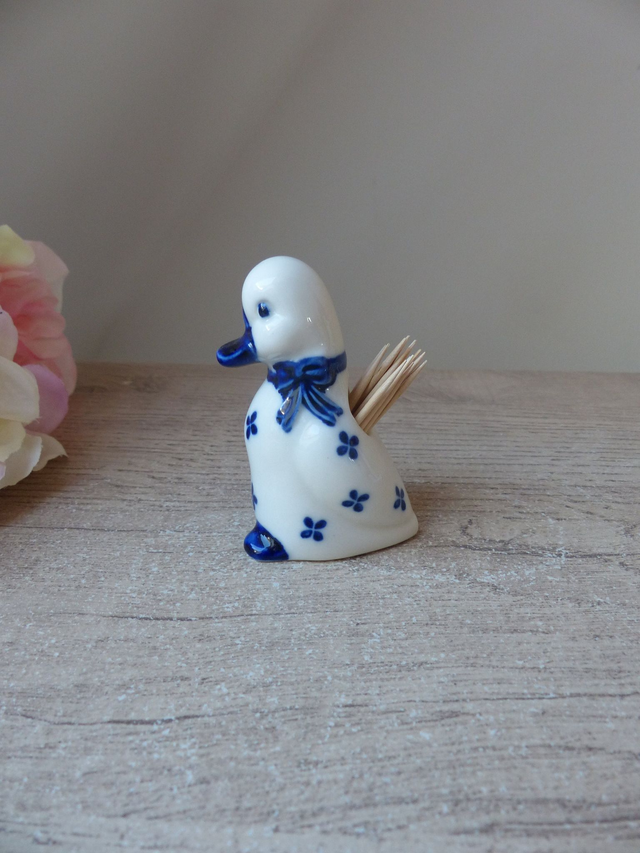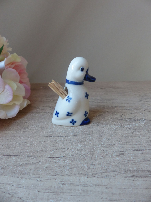 Porte pics apéritif canard - Figurine canard blanc et bleu en céramique, Canard décoration de cuisine, Table apéritif dinatoire, Bistrot bar