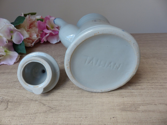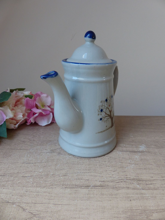 Finition artisanale, légère usure sur le motif et mini éclat discret sur l’anse du pot à lait (voir photo).