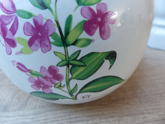 Très bon état vintage. Quelques manques de peinture très discrets sur le décor (voir photo). Vendue en l’état.