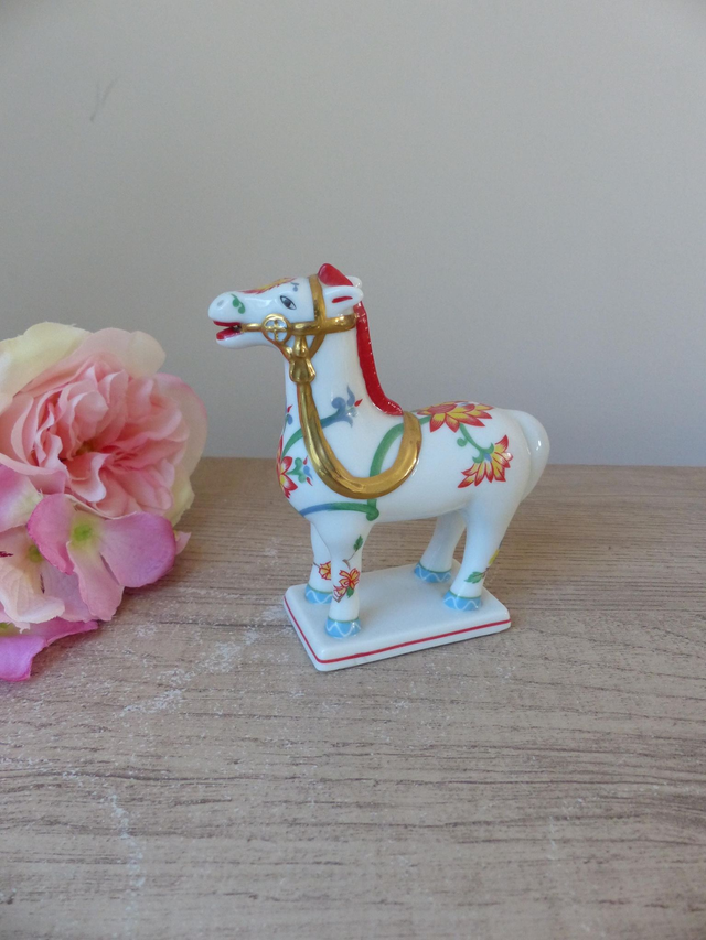 Ancienne et rare figurine représentant un cheval en porcelaine de la collection 1987 "The Franklin Mint" .