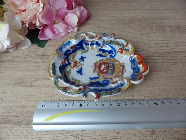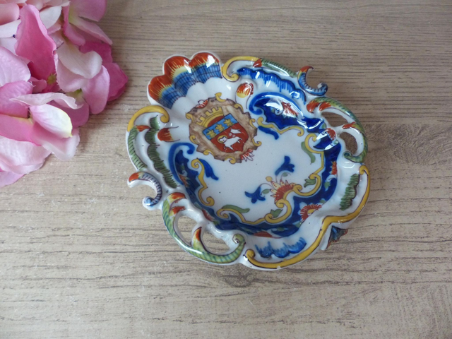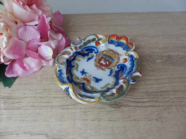Ancienne Coupelle Céramique Vieux Rouen – Vide-Poche ou Cendrier Blason Ville de Rouen, Motif Floral Peint Main, Déco Entrée Salle de Bain