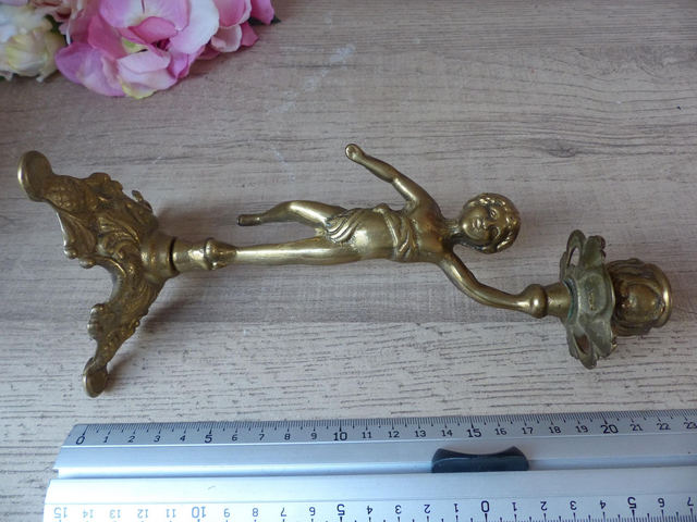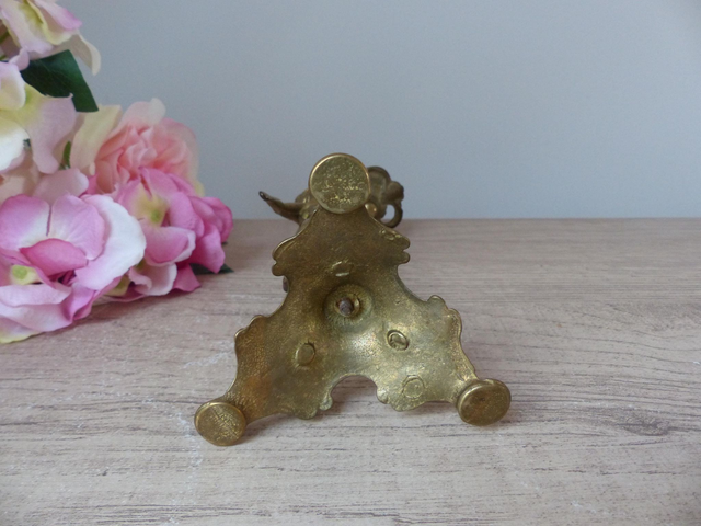 Réalisé en laiton massif, cet objet ancien séduit par sa silhouette délicate et son éclat doré chaleureux.