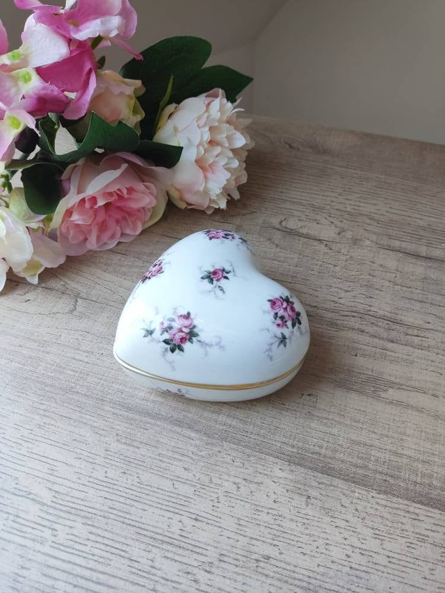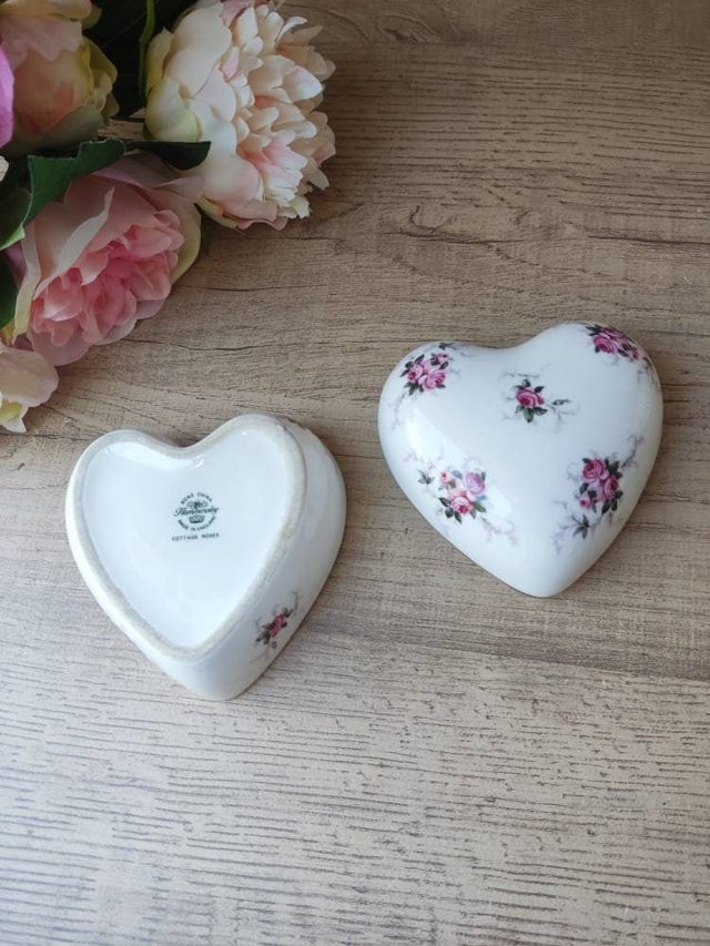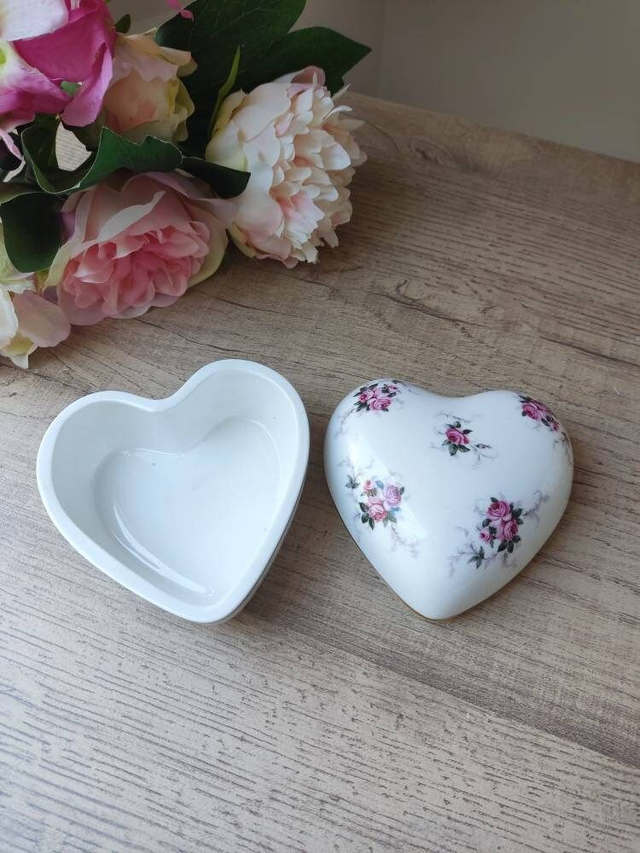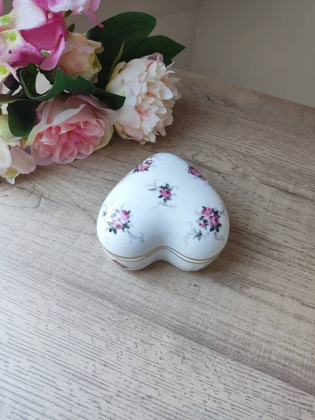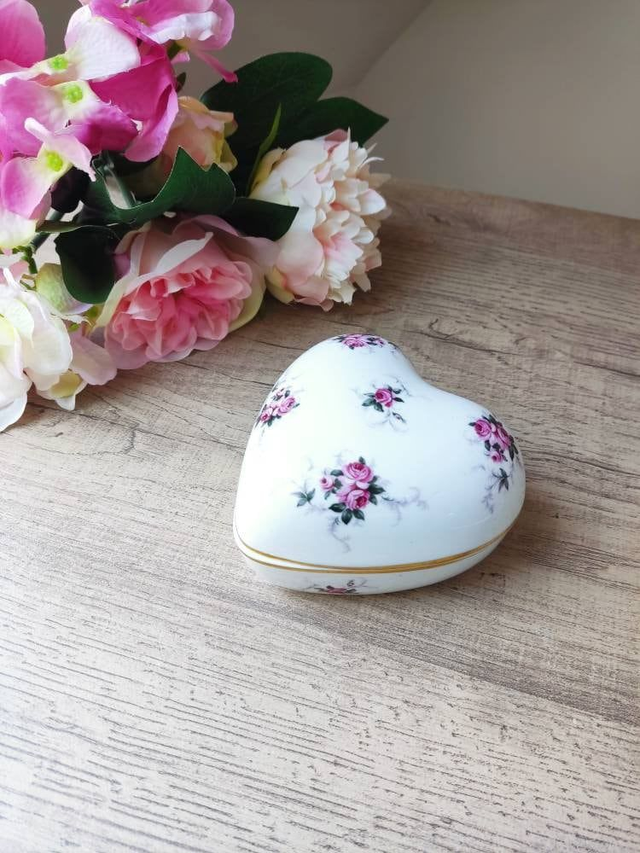Boîte à bijoux ou petite bonbonnière en forme de cœur, porcelaine vintage Hammersley Bone avec garniture en or, fabriquée en Angleterre