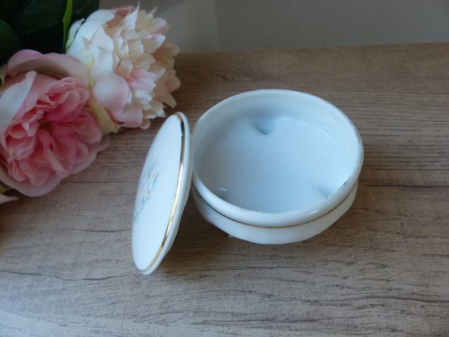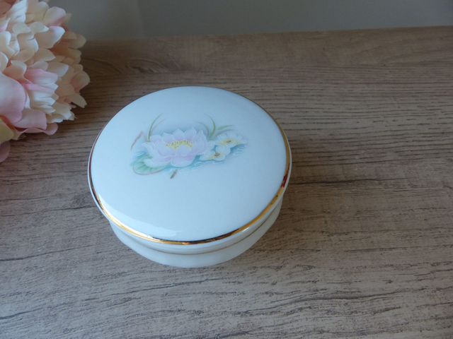 Boite à Bijoux Ronde Fleur de Lotus, Boite à Bijoux Tripode en Porcelaine de Limoges Décor Nénuphar, Cadeau Décoration Maison de Campagne