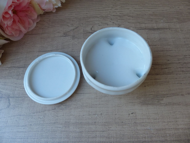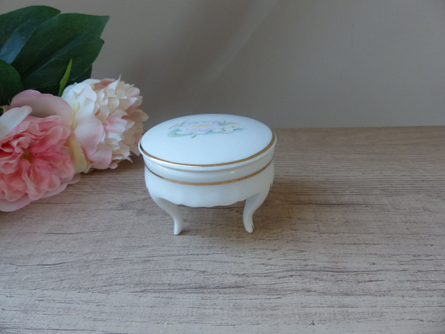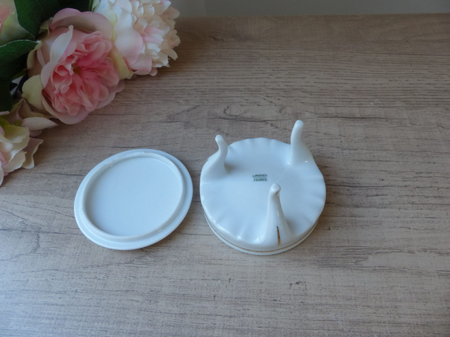 Il s'agit d'une ancienne petite boite à bijoux tripode en porcelaine de Limoges.