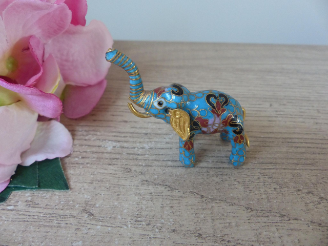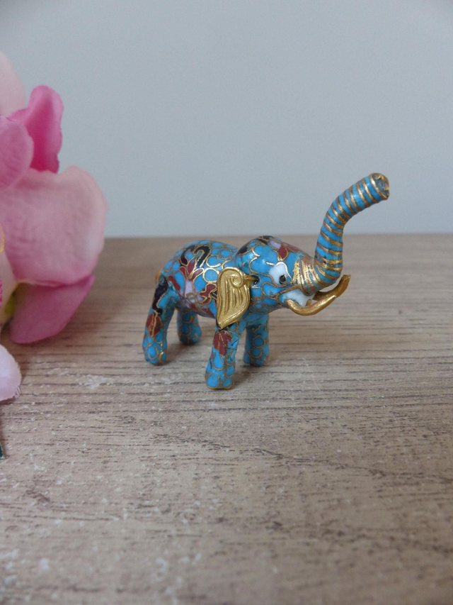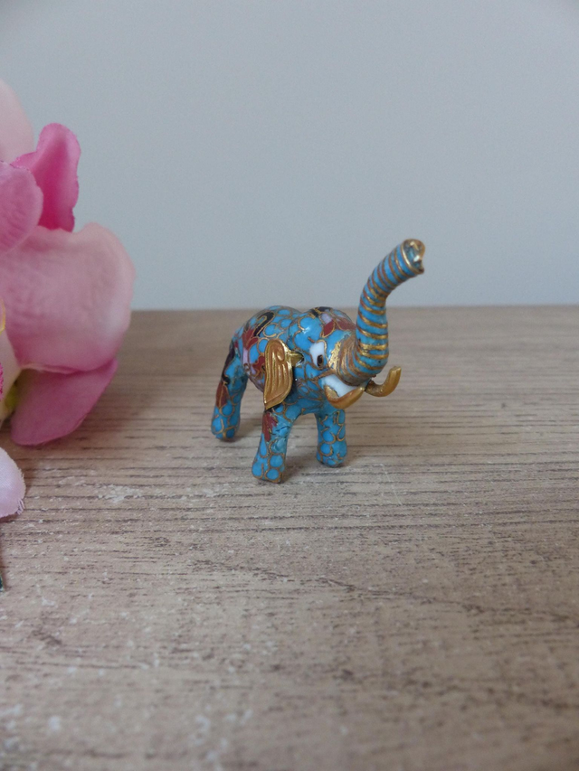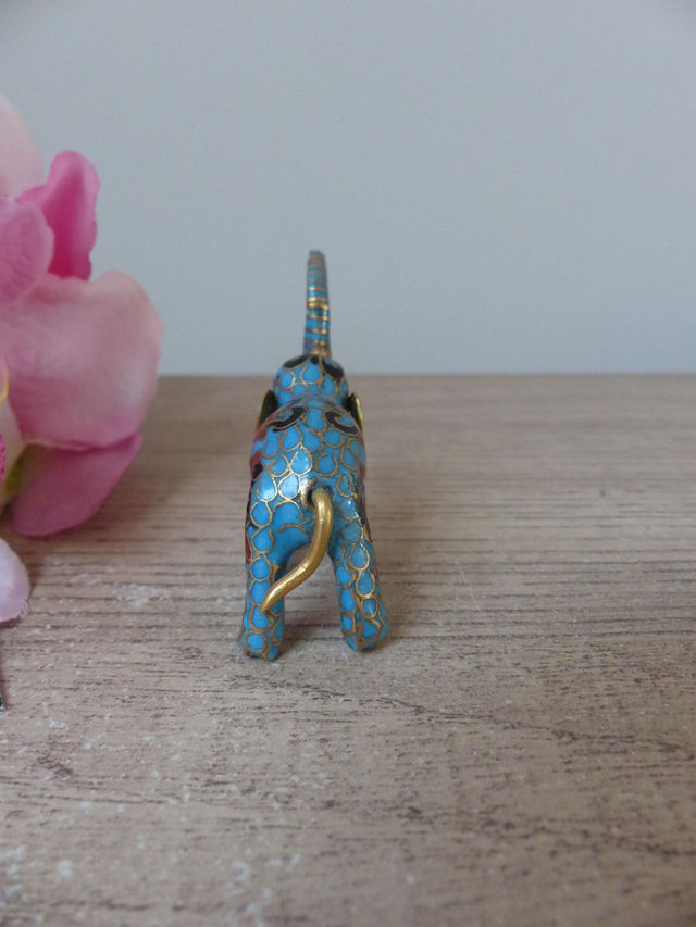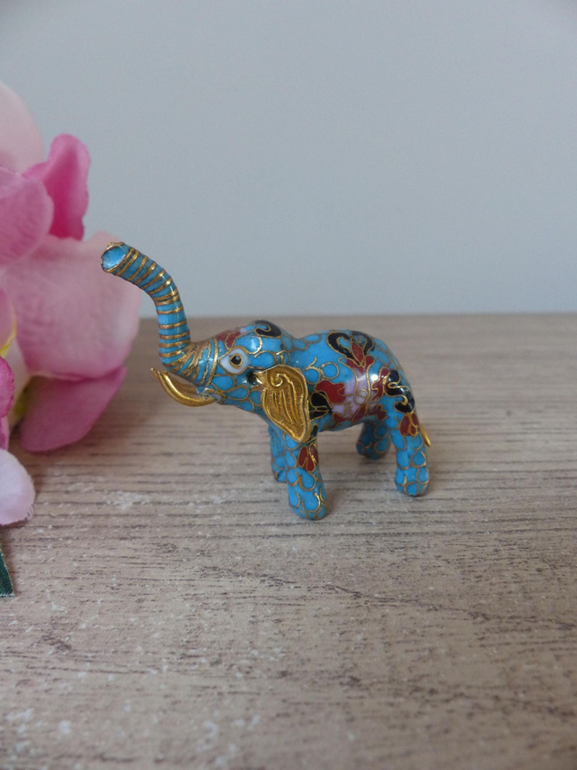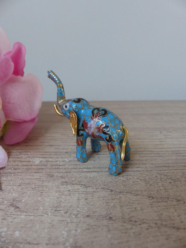 Il s'agit d'une figurine d'éléphant miniature cloisonné en métal des années 1980.