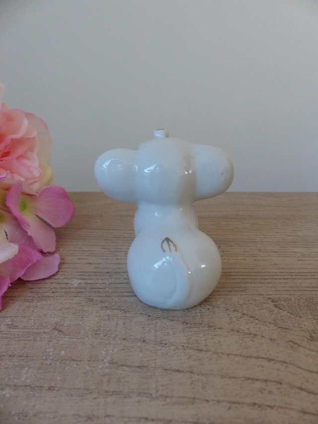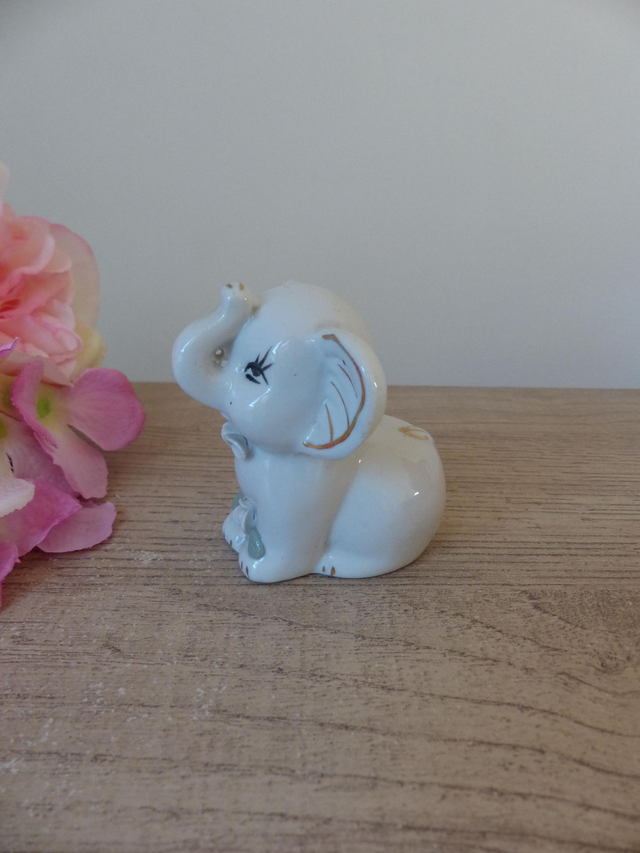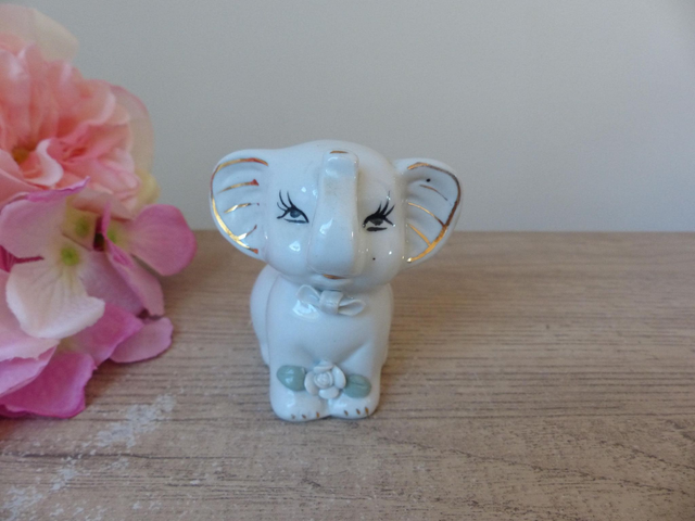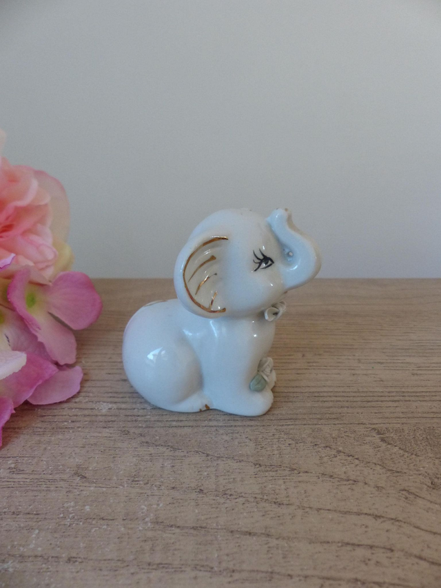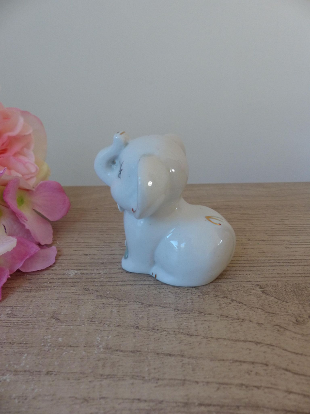 Il s'agit d'une adorable figurine d'éléphant en porcelaine blanche peinte à la main.