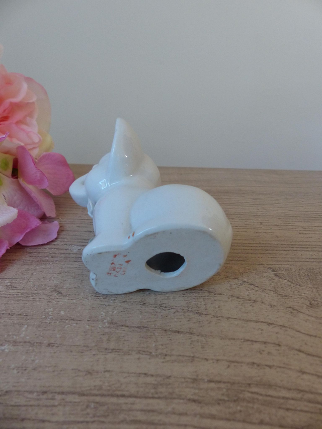 Il est en très bon état vintage. Usures normales en dessous. Un petit manque de céramique derrière l'oreille à l'origine lors de la fabrication.Deux petits points de peinture noire sur le haut de l'oreille et sur la joue.