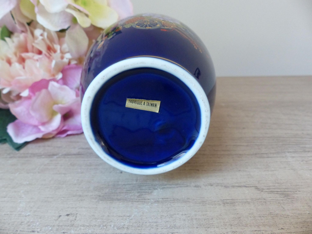 Le vase a été fabriqué à Taïwan. On retrouve l'autocollant du pays d'origine en dessous.