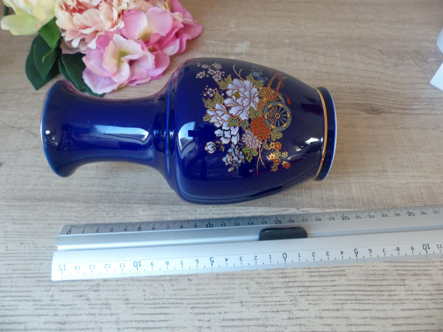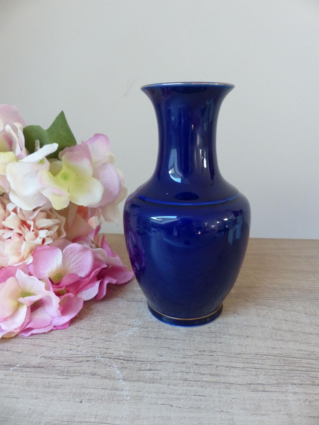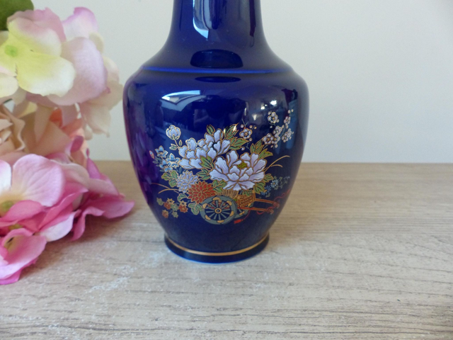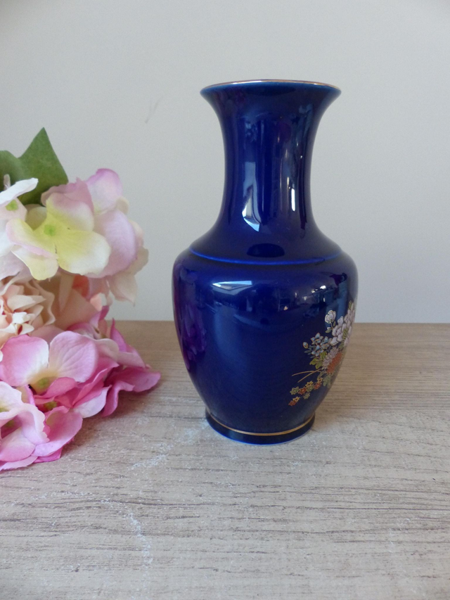 Il s'agit d'un petit vase de style japonais en céramique couleur bleue cobalt.
