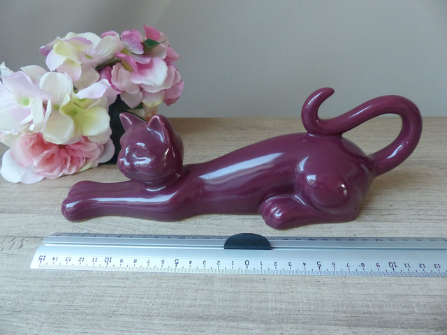 Ce chat gracieux apportera une note de douceur et de caractère à votre espace. Sa posture étirée évoque la détente et l’élégance, tout en ajoutant une touche ludique à votre décoration.