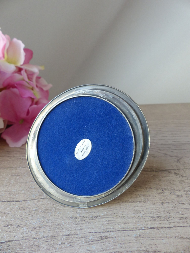 Le porte-bague est en plaqué argent (inscrit en dessous). Le bas du porte-bague est doublé de velours bleu.