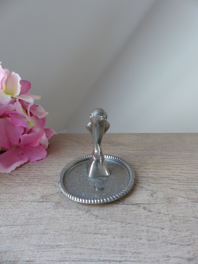 Il s’agit d’un porte-bague vintage en forme de dauphin.