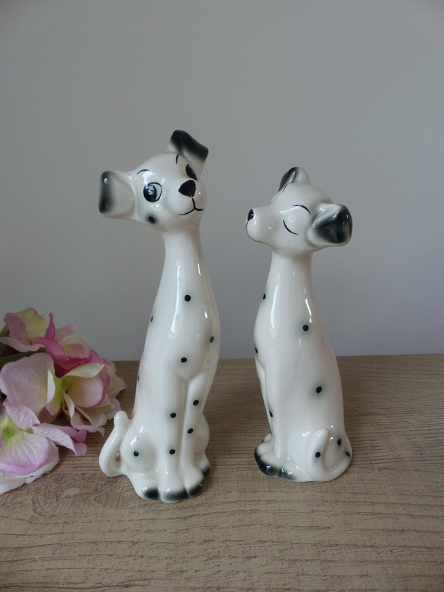 Couple de dalmatiens romantiques – Figurines chiens en céramique vintage 1970 - Décoration et cadeau chambre d'enfant