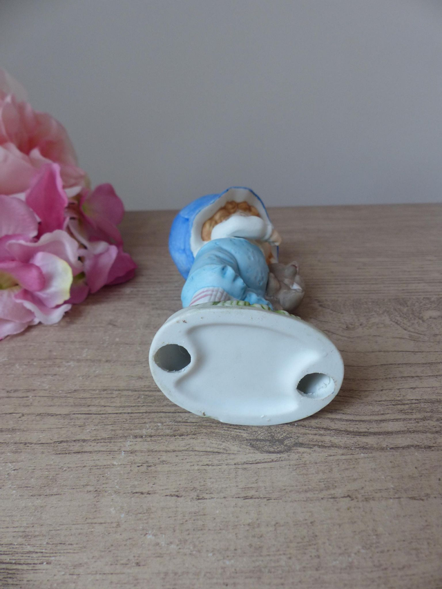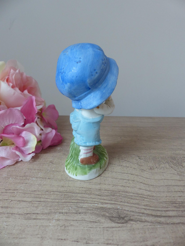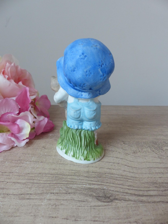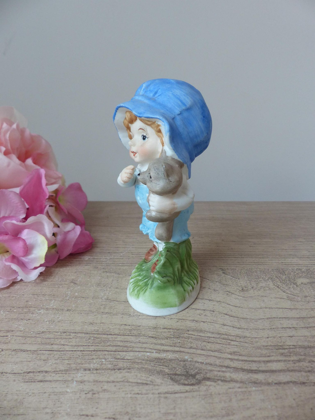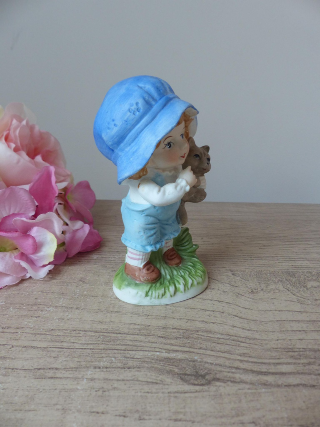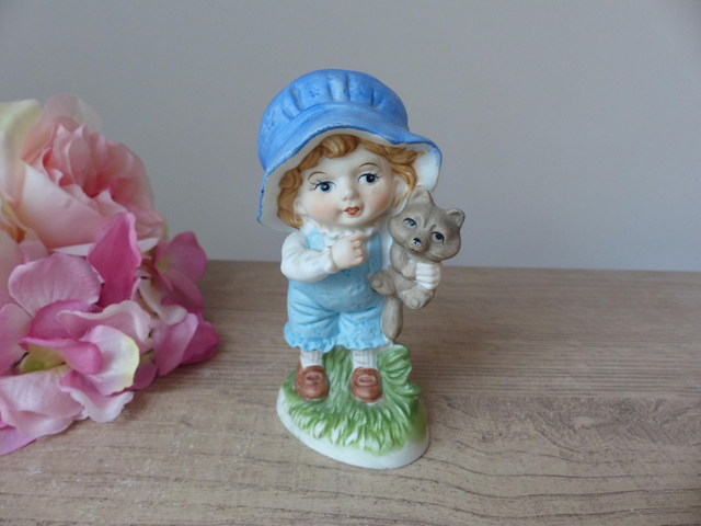Figurine vintage en biscuit de porcelaine – Petit garçon avec son chiot dans les bras, statuette peinte à la main décoration tendre et rétro